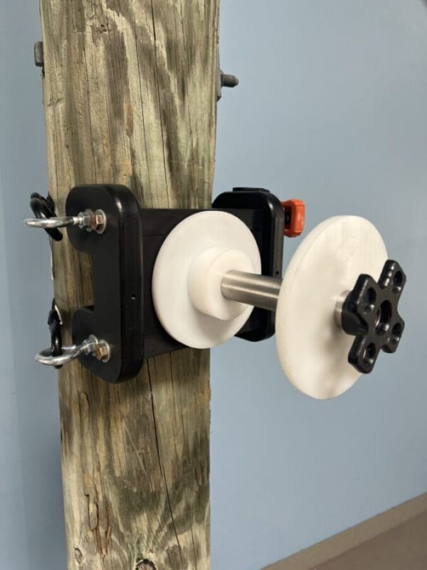 U-TECK’s Cable Reel Pole Bracket is necessary tool when deploying Aerial Fiber Optic, COAX cables or Pulling Tape. This Pole Bracket holds Fiber Cable Reels and Spools up to 36” in diameter, and 10” in width to the utility pole. This Pole Bracket is perfect for deploying drops.