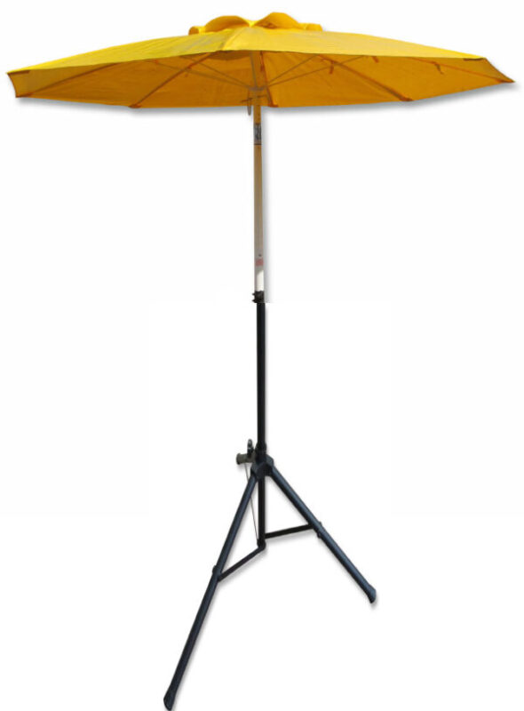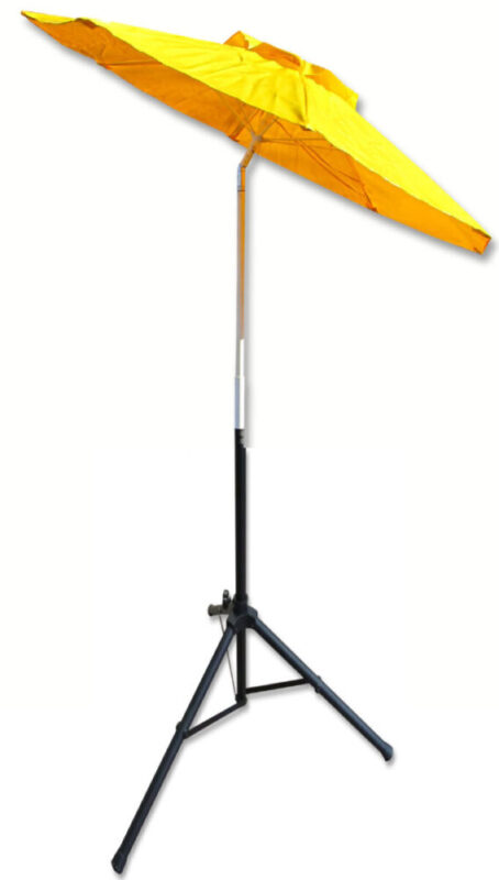 | Tilt solid umbrella | 7 1/2 ft. wide (7′ center pole) umbrella with tilt fiberglass composite pole, adjustable tripod stand with 3 anchor stakes, and solid cover | 73075YT | ||