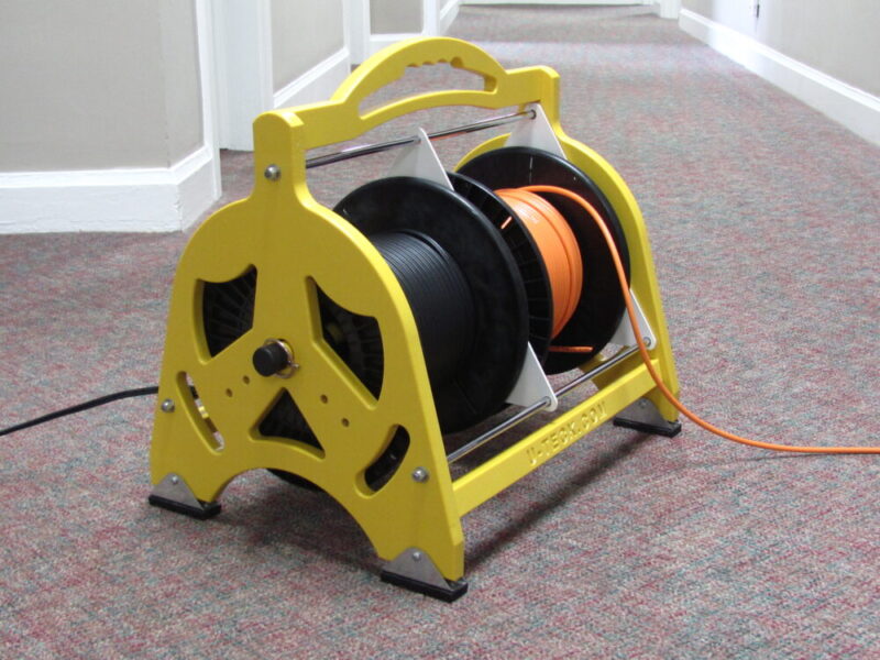 Other unique features include the quick-release spindle construction for easy reel loading from either side, and the reel divider that allows each reel to move independently from the others. This allows you to pull cable from more than one reel – in opposite directions, at the same time!